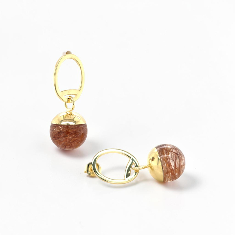 De rutielkwarts is afkomstig uit Brazilië en staat bekend om zijn karakteristieke insluitsels: fijne, oranje naaldstructuren die als het ware door de steen lijken te zweven. Geen enkele steen is hetzelfde, wat deze oorbellen uniek maakt.